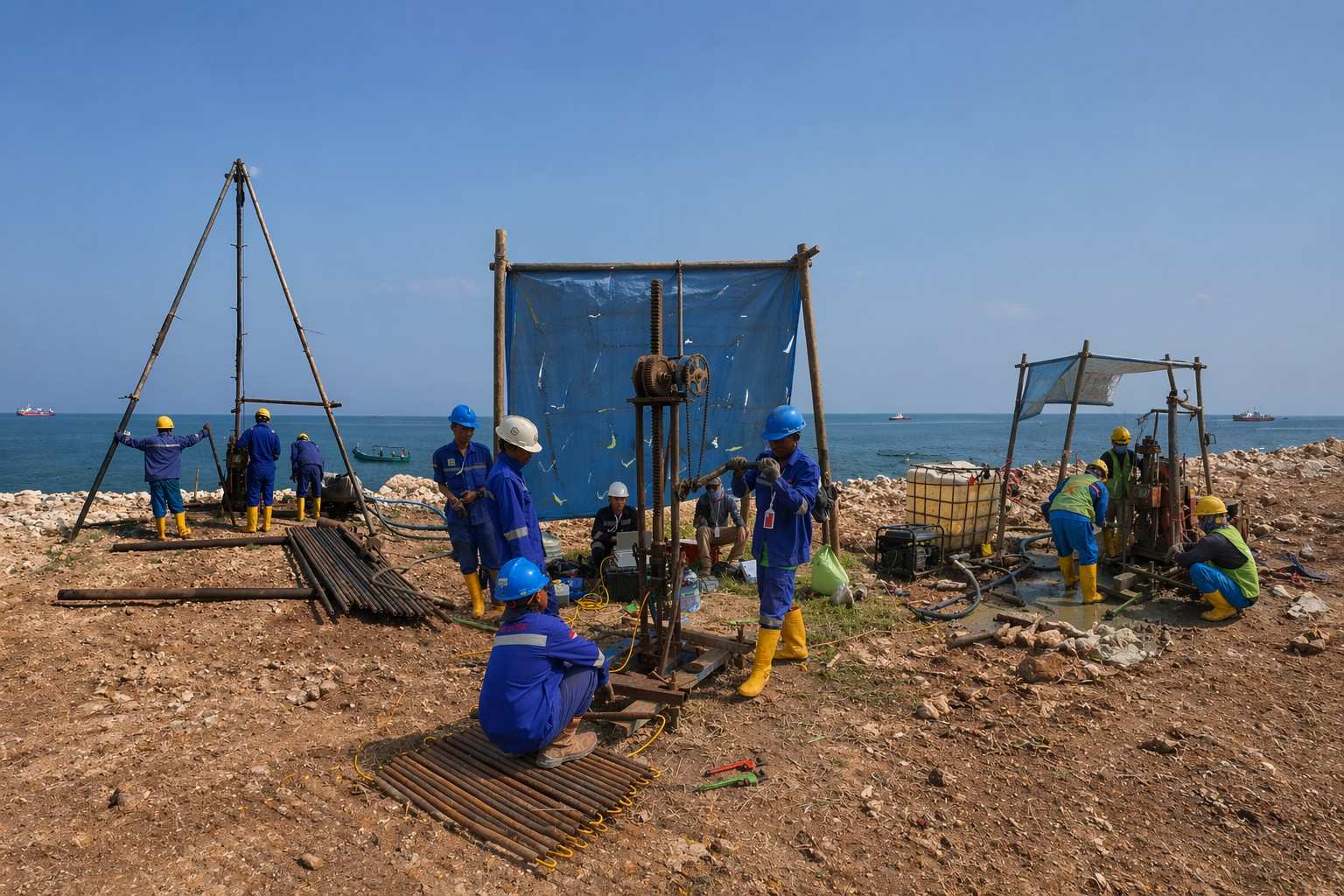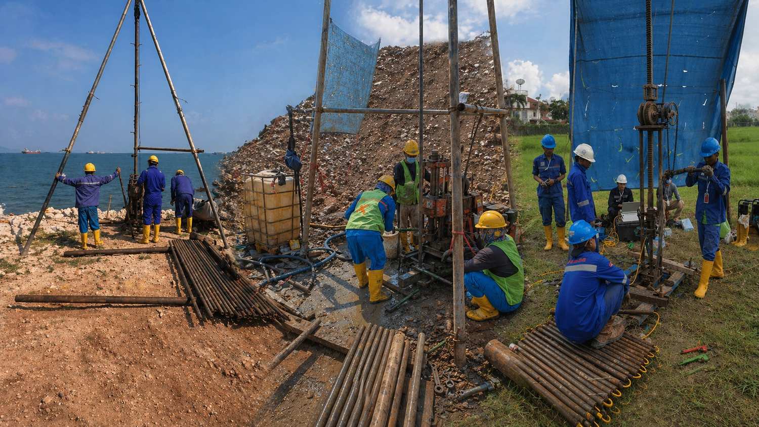Our comprehensive capabilities include essential techniques such as borehole drilling, Cone Penetration Testing (CPT), and drop sampling.